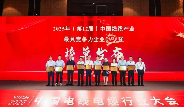 漢纜股份蟬聯(lián)2025“中國線纜產(chǎn)業(yè)最具競爭力企業(yè)10強”榜單